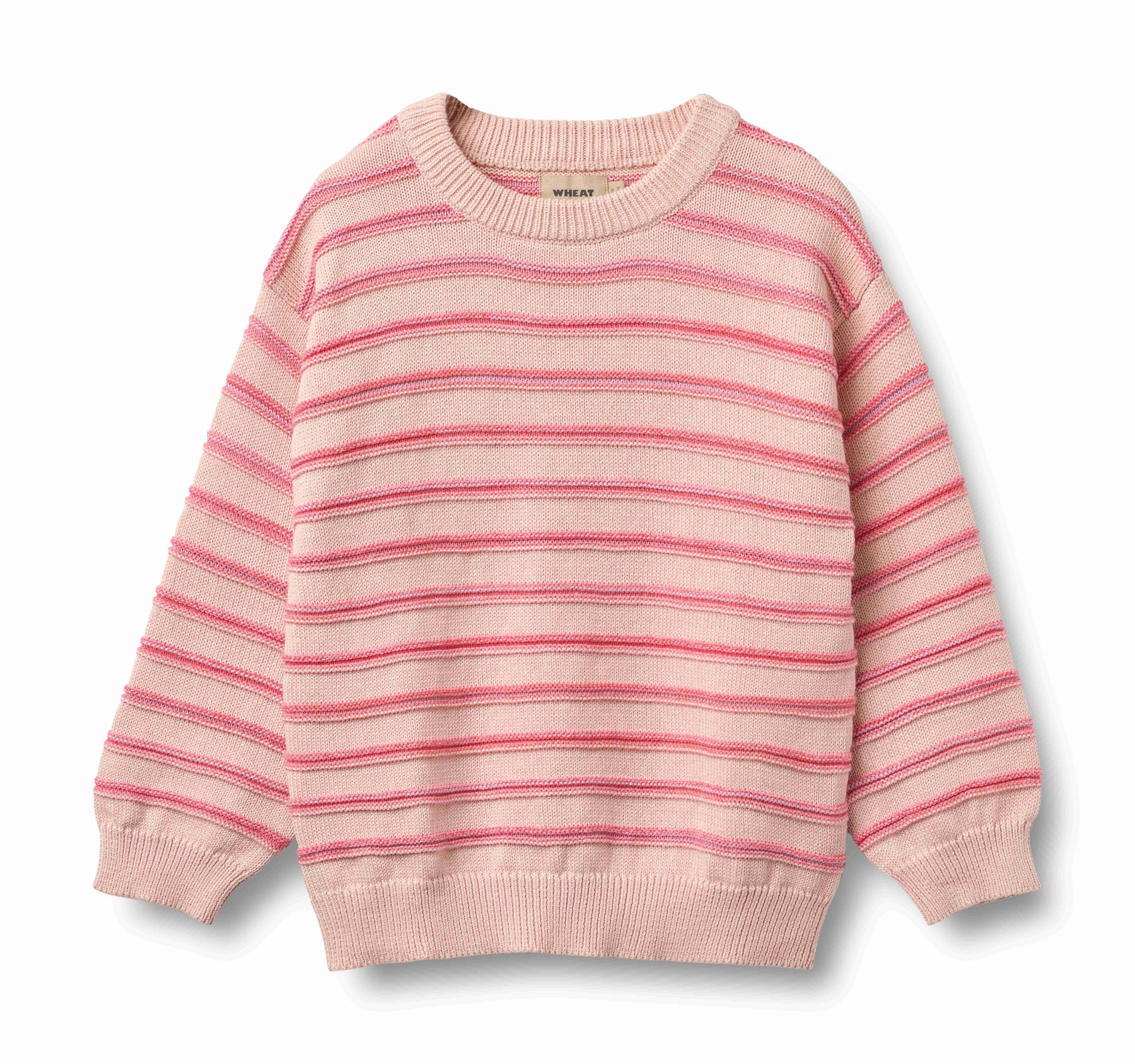 Wheat top l/s crochet striped sweater - powder stripe